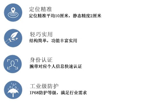 電子身份腕帶是非限制性人員定位采集設(shè)備,能將佩戴 人員的位置信息實時上傳。 記錄人員活動軌跡,地理位置,簡化管理流程,輕松實 現(xiàn)可視化查詢,并進行主動預(yù)警式的全方位管理。