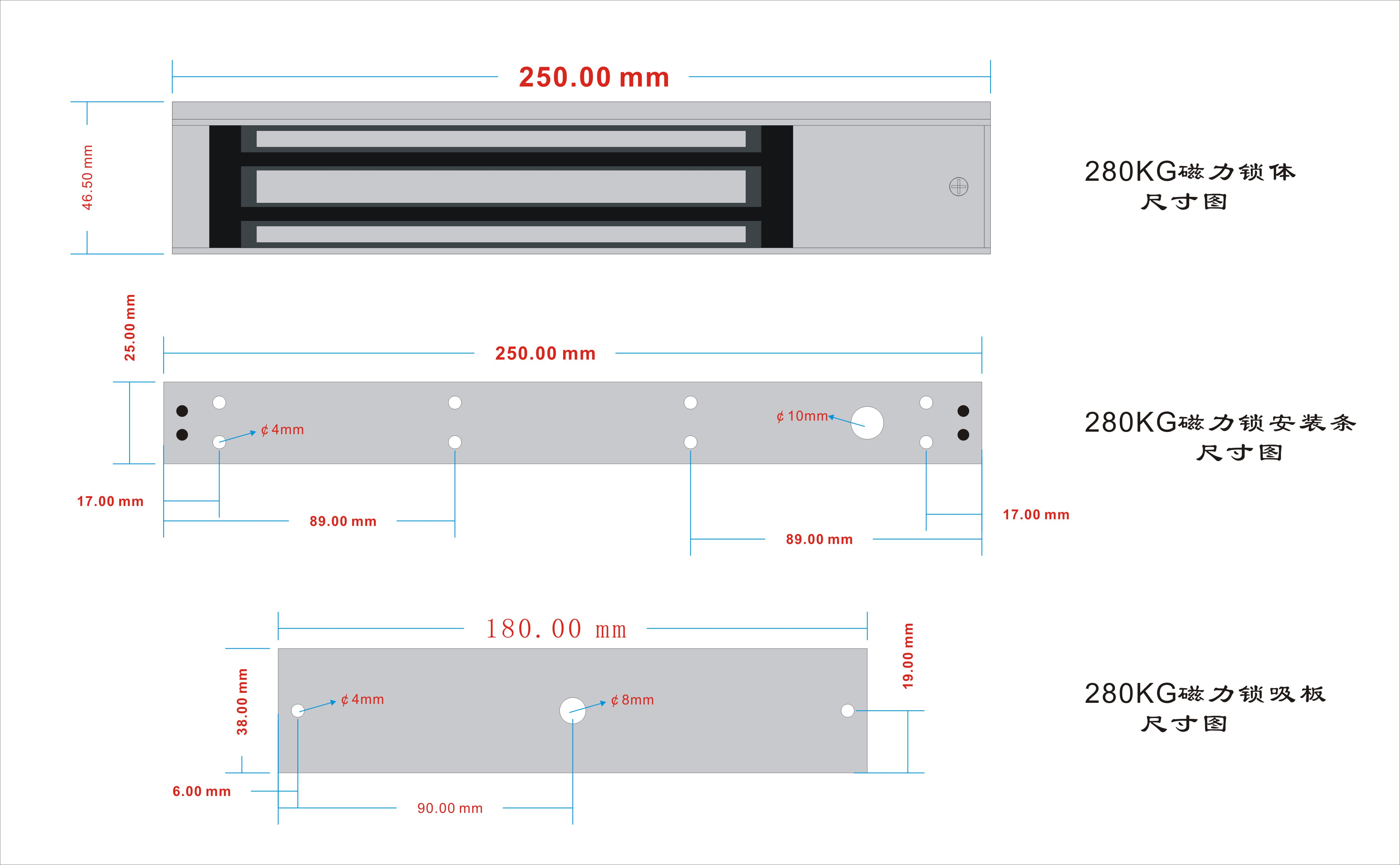 ◆ 鎖體尺寸:長250x寬48x厚26(mm) | ◆ 吸板尺寸:長180x寬38x厚11(mm) |
