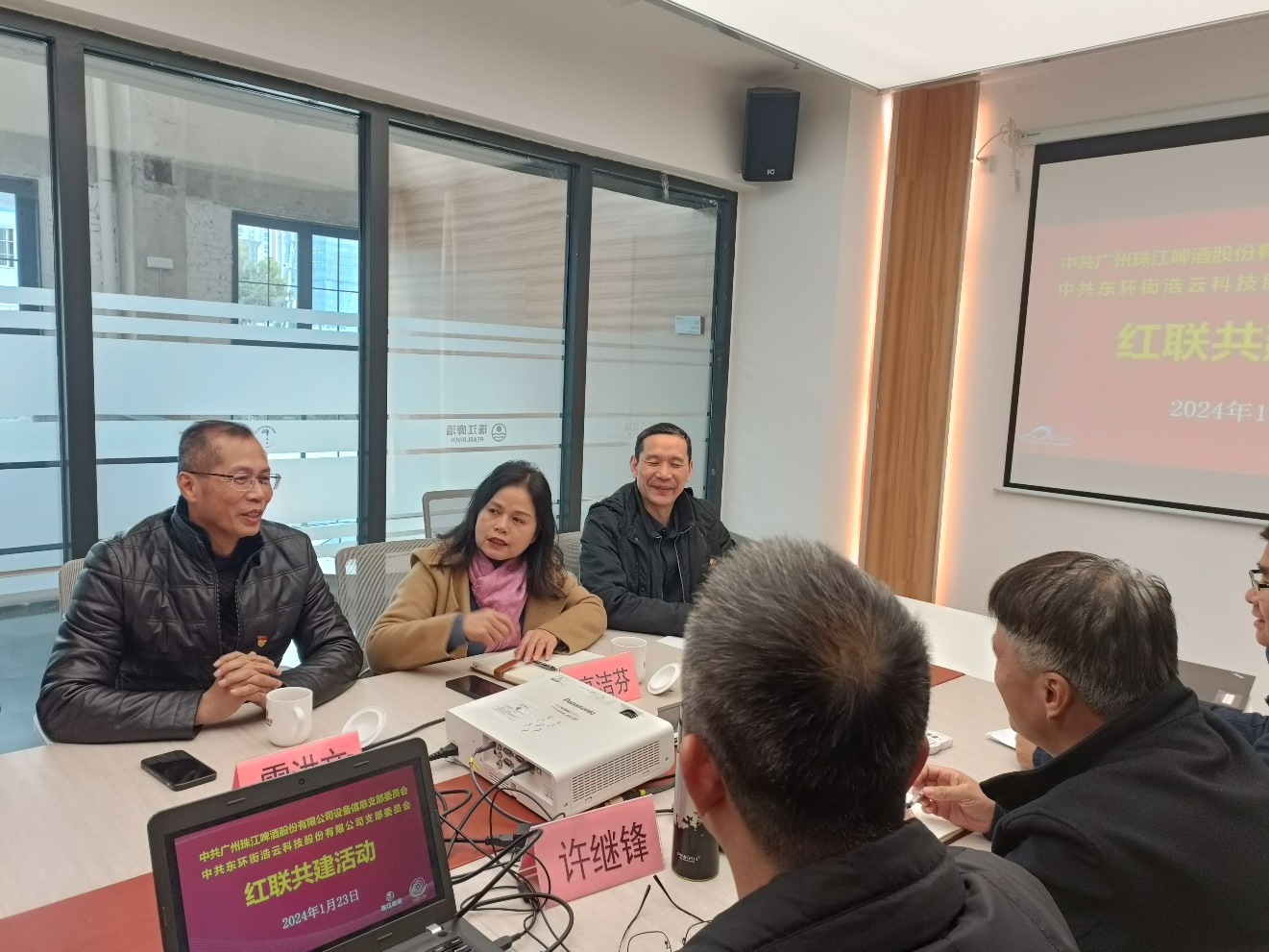 活動首先由珠江啤酒股份有限公司設備信息黨支部書記許繼鋒領學習近平總書記關于網(wǎng)絡安全和信息化工作的重要指示精神,浩云科技支部書記雷洪文總經(jīng)理和何健華顧問分別領學廣州市網(wǎng)絡安全和信息化工作會議精神并解讀重點內(nèi)容。雙方交流黨建工作及設備信息黨支部“智創(chuàng)先鋒”黨建品牌創(chuàng)建和深化方案推進經(jīng)驗。珠啤股份信息部部長林云青向浩云科技一行介紹珠江啤酒在信息化、數(shù)字賦能助推企業(yè)高質(zhì)量發(fā)展方面的經(jīng)驗。雙方還就貫徹落實廣州市網(wǎng)絡安全和信息化工作會議精神,“黨建+”數(shù)字賦能鍛造高質(zhì)量發(fā)展“紅引擎”、筑好網(wǎng)絡安全“防火墻”深入交流探討,為筑牢網(wǎng)絡安全防線,在數(shù)字產(chǎn)業(yè)化、產(chǎn)業(yè)數(shù)字化方面進一步交流合作打下基礎。